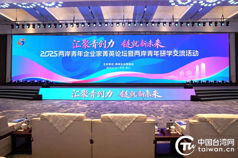 中国台湾网昆山8月15日讯(记者 刘赛飞)15日,2025两岸青年企业家菁英论坛暨两岸青年研学交流活动在江苏省昆山市开幕。此次活动由两岸企业家峰会主办,主题是“汇聚青创力 链就新未来”,两岸青年企业家代表、台湾大学生等450多名嘉宾参加活动。
